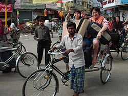 k日記インド編 2001.3.25(日) そのちゃんがデリーに向けて旅立っていった。私達ののろのろ旅行に付き合ってくれてありがとう。また、どこかにいたら遊びに来てね。そのちゃんを乗せたリクシャにいつまでも手を降る。 しかし・・・重いトランクに重いシャントゥール、背中にはリック。あんなに荷物持ってて、ちゃんとデリーまでたどり着けるだろうか?デリーから飛行機に乗るまでに2日もあるし・・・ちゃんと日本まで帰れるのか?心配は募る一方。無事に帰ってくれよ。楽しかった旅行は、楽しいままで帰るのが一番だから・・・祈るしかなかった。 |