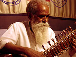 k日記インド編 2001.3.29(木) ツーリスト向けインドクラシックコンサートとやらに行ってみることに。バラナシには、ミュージックセンターと称して、ツーリストにインドの古典楽器を教える楽器屋が多い。彼らは、日夜コンサートを開いて、ツーリストに高い楽器をより高く買わせるためと、自分のセンターで楽器を習ってもらいたいがための客集めだろうが・・・表向き、インド楽器のすばらしさを説いているらしい。 暗く細い路地の突き当たりから光がパーっと漏れている。真っ白いひげ面のオヤジが入れ入れと手招きをしていた。インド布の仕切りをぱらっとめくると数人の外人が思い思いの場所に腰をかけていた。タブラが置いてある横が空いていたのでそこに陣取る。始まるまで呆然としていたが、開演の8時を過ぎても一向に始まる気配を見せない。どうやら、もっと客がくるのを待っているらしい。 おもむろにチューニングを始めたタブラ奏者とインド版フルートのバンスリー奏者が並んで座っていた場所にスポットライトが当たる。タブラ奏者の挨拶でコンサートは始まった。プロとまでは行かないが、なかなかうまいような気がする。とりあえず、リズムの勉強だと思ってビートを数えながら聞いてみる。たまに「1」とか「2」とか言ってくれてわかりやすい。 チャイの休憩のあと、大御所登場。先ほど手招きしていた白ひげのオヤジがシタールもってタブラの横に静かに座った。演奏もまあまあよかったが、やわらかな光に照らし出された白髪、白ひげのオヤジは、ビジュアル的にものすごくかっこよかった。 そして最後は「私たちが親切丁寧に教えています。いつでも来てください」とお決まりの言葉でコンサート終了。うめちんもアア言う風にビジュアル的にかっこよくなれば?3ヶ月に数センチしか伸びないひげでは、いつになることやら。しかも、白くなる前にすべてなくなってしまいそうだもんなぁ・・・ははは。 まあ、普通のコンサートもいいけど、こう言うのも気軽でいいかもしれないと思った。 |