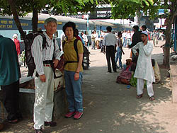 k日記インド編 2001.5.18(金) 朝のチャイを飲んだ後、うめちんが帰ってきた。お父さんもお母さんも無事にやってきた。久しぶりに見るお父さんたちは変わっていなかった。ただ、すでに疲れている感じ・・・インドはすごいところだと、相当なカルチャーショックを受けたらしい。「kちゃん大丈夫、ずいぶん痩せたんじゃない?」そんな言葉を聞いたら、「せっかく、トレッキングに来たのにこんなことになってしまって申し訳ない」そんな気持ちがこみ上げた。でも、言葉に出しては言えなかった。少し話をして久美子ハウスに帰っていった。 夕方、帰ってきたうめちんを追うように先生がやってきた。検査の結果が出たらしい。どうやら、膀胱が炎症を起こしていてそれが原因で熱が出たらしい。そして、今日の晩、アンプルを打って様子をみて、明日、何でもなかったら宿に帰ってもいいことになった。 やった、あした帰れる・・・かもしれない。そうあって欲しかった。 |