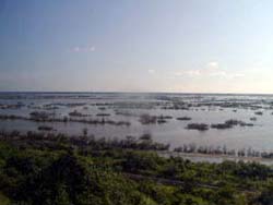 k日記メキシコ編 99.8.31(火) こんにちは、Kです。 朝、起きると車窓は草原に変わっていた。昨日見たときは砂漠だったのに・・・だいぶ内陸に入ってきたみたいだ。昨日、いっぱいだったメキシコ人は半分くらいに減ってしまっている。夜中にどこかで降りたらしい。運転手は、一夜走ったというのに朝から陽気に歌なんぞ歌って、ハンドル放して踊ったりもしている。なんだか楽しそうでいいなぁなんて思いながら、外を見ると牛や馬が野放し状態で草を食っていたりする。こんなところもあるんだなぁと心がのほほんとなる。 朝なのでお腹が減ってきた。そのうちそこかでとまってくれるのか?が、一向に止まってくれない。そのうち車窓は草原から低層のジャングルにどんどん山へ分け入ってるようだ。 そのうち湿原が現れたりうっそうとしたジャングルになったりといろんな顔を見せるが朝ご飯を食べれるような町が出てこない。腹減った。結局、10時過ぎにドライブインらしきレストランにやっと止まってくれてご飯にありつけたが約10分しかくれない・・・急いで食べる。人心地ついたらやることがなく外を見てるうちにまたうとうと寝てしまった。 ふっと目がさめるとバスの中は、運転手2人とメキシコ人4人と私たちの2人だけになっていた。しかもはじめから乗ってるのは私たち2人と運転手だけ。一気に南下する人は少ないらしい。 車窓は夕日が夕闇に変わろうとしている。オレンジから紫へそして・・・夜がやってくる。もう、20時間走ってるがまだつかないらしい。あと、どれくらい?と聞くと8時間位かな。ということは10時にはつくであろう。遠く峠の空では雷がなっているらしくたまに明るく光る。そのうち雨が降り出しバスの真上で明るく光り出す。峠をもういくつ越えただろう。 バスの時計はプエルトぺニャスコを出たときからなぜか2時間進んでいた。狂ってると思っていたがグアダラハラのセントロカミオネラの時計も2時間進んでいた。時差があるらしい。もう、深夜の12時30分になろうとしている。今夜の宿はどうしよう?タクシーの運ちゃんにセントロで自由市場の近くの安宿に連れていってもらい本当に安かったので泊まることにする。実に28時間のバス旅、疲れた・・・。 |