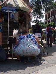 k日記メキシコ編 99.9.3(金) こんにちは、kです。 朝、目を覚ますと外はまだ薄暗く時計を見ると7時ちょっと過ぎ?え7時過ぎって今日一日寝てたの?そりゃあ昨日遅くまで起きてたけど・・・なんてびっくるするくらい、グアダラハラは朝8時ころにならないと明るくなりません。反対に暗くなってきたからご飯でもと、市場の安食堂に出かけるほとんどの店が閉店掃除してたリして、閉まるの早すぎるよね・・・と思うくらい夜8時ころにならないと暗くなりません。ここに来たころは寝ボスケで気がつかなかったのですが昨日初めて知りました。変な時差のせいだと思うのですが、調子が狂ってしまいそうです。 今日は、通信でhpをUPできるところを探してさんざ歩きました。昨日、旧バスターミナル近くで見つけた電話屋さんなら・・・とパソコン通信道具一式を背負って出かけました。が、お店のおばちゃんの聞くとそれは回線の問題で出来ないのでここに行っては?とインターネットカフェを紹介してくれました。カテドラルの2ブロック先のちょっとおしゃれなビルの一室にそれはありました。入ると6畳くらいのガランドウの部屋にパソコンが5台うち(一台はディスプレイ用)あって数人がインターネットしてました。お店の方に事情を話すとしぶしぶOkしてくれたのでLAN接続に混ぜてもらうことにしましたが、残念なことにここはインターネットが見れるだけでe-mailやftpは使えなくしてありました。しょうがないので、高級ホテルのロビーでんわを使おうとホテルフェニックスへ。お、つながるじゃん。と喜び5分あとは不通・・・。何度ってもつながらず、つながってもすぐ切れてしまう。受話器の形がカプラ-と合わなく音が外に漏れてしまってるらしい。電話代がもったいないのでここもあきらめる。どうしようかと悩んだが結局、ちょっと危険かも知れないが自分の泊まってるホテルの前の公衆電話で今夜通信することに決める。 先が見えてくるとお腹が空いてくる。タコス以外のご飯を食べたくて自由市場へ。威勢のいいおばさんがいるカウンターでサルサご飯とミートボールとふかしポテトのディッシュそれにとなりでごはん食べてたオジサンにポテトコロッケをもらって食べる。ここに来て初めてポテト料理を食べたがすっごくおいしかったよ。どこの国もポテト料理だけはハズレがないような気がします。私としてはポテトサイコ-!!!って感じです。もいいもんだ。 ホテルに帰る道すがら、きわどい本がしこたま売っている売店があり、梅チンはいつもなぜかここにつっかかる・・・どうしようもないぁ・・・と思いつつ「買うのー?」と問う。「CD−ROM付だと79ペソかー、友達におみやげにと思って・・・でも高いなー」とつぶやく。白い目で見ていると「俺は、見ないよ!」でも顔が笑ってる・・・男ってしょうがないねーー;そんなことを毎回繰りかえす。ちょっと、旅行に余裕がでてきたということだろうか? 近くの教会で30分おきくらいにリンゴ−ンと鐘がなる。なかなか情緒があるいい町である。さながらヨーロッパ的な感じがすごくする。町中や公園もとてもきれいだと思う。友達にはメキシコに来たらぜひグアナダハラへとお勧めしたい。明日は、朝早くにここを出発グアナファトへ行こうと思う。今日は、さんざん歩いて疲れたのでこの辺で。 |
