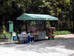 k日記メキシコ編 99.9.9(木) メキシコシティーにでは地下鉄が便利である。街のメジャーなところは大概行けるし、タクシーやバスよりもぜんぜん安い。どこまで乗っても一律1.5ペソである。行き先の表記もちゃんとしてあるのでバスよりはわかりやすい。札幌の地下鉄と同じタイヤ電車で親近感が沸いたが・・・ちとちがかった。それは、やけにドアの開閉が短く、人が乗り降りしてようがしてまいがかまわず人間粉砕機みたいにドアが両側から迫ってくる。私も人間粉砕機の餌食になるところだったか、寸でのところで粉砕されずに乗りこめた。乗りごこちはなかなかだが、だいぶすっ飛ばして駅に近づくと急ブレーキ。すっ飛ばしすぎて時間が詰まってしまうのか駅でもないところに平気で停車。どこぞのゲームでは、「ちょっちょっちょっと、なーにー」と言われて減点になってしまうのでは?という実に楽しい乗り物である。 その地下鉄に乗って国立人類学博物館に出かける。前回、工事中で見れなかったヒスイの仮面が目当てである。地下鉄を降り、公園の中を露店を冷やかしながら1k位歩くと池が見えてくる。そこでボートに乗り、約1時間ほどアヒルの声真似をしながら一生懸命オールをこぐ。ボートを降り、人懐こいメキシコ人とつたない英語で楽しくおしゃべりをし、やっとのことで博物館にたどり着いた。「地下鉄で行くと遠いよ」といわれていたが、こんなに遠かったのかぁとしみじみ思ってしまった。3時間ほどかけて、途中眠りながらゆっくり博物館を見て周り、念願のヒスイの仮面も見たが「ああ、これか」とだいぶ感動薄でありました。展示の終盤でぽつぽつと雨が降ってくる。そのうち雷がなり夕立になってしまった。ふと後ろを振り返るとなんとみごと!飾りだと思ってた屋根についた数本の蛇みたいなものから水がじょうじょう流れてる。屋根を支えてる中央の柱の周りだけ雨がざーざー降っていて水のカーテンみたいに見える。すばらしい!だいぶ、お得な見学であったとご機嫌で帰ったが、日曜日は入場料無料になるということを後で聞いてだいぶがっくり。でも、博物館の違う顔が見れてそれもまたよしと思った。 今日は、だいぶ長い一日でありました。 |