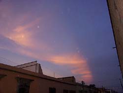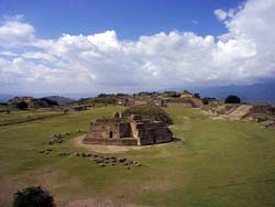 k日記メキシコ編 99.9.24(金) 昼頃,もそもそ起きだし、宿をドミトリーに移すことにする。なぜかと言うと、こともあろうに「地○の○き方」をミトラ行きのバスの中に置いてきてしまい、情報が途絶えて困ってしまったから。ドミに行けば情報が・・・ガイドブックがあるはずだ!そう思い、さらに増えた荷物を背負ってホテルを出発。テクテクテク・・・デクデクデク・・・とだんだん重い足取りで歩いて約20分。セントラルバスターミナルに近いドミに到着。小奇麗で台所が使えるいいドミだ。早速、ガイドブックを探して住人に聞きまくる。やっとこ英語のガイドブックを借りコピーすることができ、一安心。そう言えば、起きてから何も食べていないことに気がつきモンテアルバン行きのバスを探すついでに食堂も探すことに。でも、安い食堂はなかなかなく結局、小さい割に高価なトルタスを食べることに。今後、オアハカの食堂には期待しないことにしようと思った。腹も多少、膨れたのでモンテアルバンに行くためのバスを探す。 モンテアルバン行きのバスはホテル・リベラスから出ると宿のお姉さんが教えてくれたので、まず、ホテル・リベラス行きのバスをその辺にいたおばちゃんの力を借りて乗りこむ。結構、遠かったが無事到着。ホテルのツーリスタでモンテルバン行きのバスチケットを購入した後すぐ出発する。大きな通りから細い未舗装道に入り山をどんどん登って行く。オアハカ盆地を一望し、それでも登り続けて空が近く雲や飛行機に手が届きそうなところに静かに建っている。 時々、飛行機が飛んでくる音以外は、風と草のささやが聞こえるだけ。いつまでもボーっと遺跡の上で遠くを眺めていた。ちなみにこの遺跡も学生証でタダで見させてもらいました。帰りに夕食の材料とビールを買って、宿で親子丼を作って見ましたがしょうゆのおかげでおいしく出来ました。久しぶりの日本食いいですね。やっぱり日本のご飯が一番だとしみじみ思いました。今度は、お寿司なんかに挑戦しようかと計画中です。 |