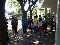 k日記ニカラグア編 99.12.11(土) 気がついたら土曜日だった。お金がなかったので銀行に行って両替しようと思ったが時間が時間で特別窓口だけ開いていたが相応な人が並んでいた。 銀行の目の前に高級ホテルがあるのでそこで両替してもらおうと行って見たがフロントで露骨に断られてしまった。人を見る嫌なホテルだった。 どうしようかと考え、1km先にある両替商街へ行って見ることに。暑い炎天下の道を延々歩いてたどりついてガックリ。何処もかしこも閉まっている・・・ここまで歩ったのに・・・呆然。そうだ、グアテマラでも使った空港ならとガイドを開いてもっとガックリ。空港のくせに土曜日は午前中しか両替出来ないらしい、しかも休日は休み来ている。ここも銀行が終わっている。としょうがない、あの列に並ぶしかないと来た道を引き返す。 警備員にチェックは両替できるか?と聞くと出来ると言うので列に並ぶ。どのくらい待っただろうか、やっと私達の番がやってきた。パスポートとチェックを渡しちょっと待てと銀行員が奥へ消えていく。「これは、両替できない。違う銀行へ行ってくれ」と冷たいお言葉が帰ってきた。お願いだ、ここしか開いてないんだお願いだと食い下がってもダメだった。USドル札だったら両替できるのか?と聞いたら出来ると一筋の光が見えた。これ以上銀行に時間を割きたくなかったのでさっくりUSドルで両替。これで、ご飯が食べられると二人で目が輝いた。 シュノーケルを買いにメトロセントロへ行って見た。やっとこバスを捕まえ、着いた先は、銀行や高級ブティックなどが集まるショッピングセンターだった。なんでも売っている店でやっとシュノーケルを発見。ここでの用事はさっくり終わるが、チェックが変えられるかもしれないので銀行街に行ってみたが「それは、出来ない、あっちの銀行に行ってみろ」とたらい回しにされただけだった。ここの銀行は何処も使えないのだ。 これから行くコーン島は、物価が高いのでここで食料を買いこんで行こうと思っていたのでマンゴ荘の近くのスーパーに買出しに。お米やパスタ、調味料と色々買いこんだ挙句、こんなに持っていくのか・・・と絶句。荷物を詰める前に嫌になったと同時に、私達はケチだと再確認させられた。 数日前から、うめちんの妹が冬休みの間こっちにやってくるらしいとメールがあったが、連絡が取れず焦っていたが今日やっと連絡が取れた。どうも飛行機のチケットが取れないどうしよう?と行っている。さて、いろいろ考えていたがお兄さんはどうするのか?なんとかしなければと悩むうめちんでした。 |