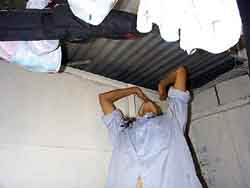 k日記ニカラグア編 99.12.17(金) 昨夜遅く蚊の大量発生に目を覚ましたうめちん。いつも、私ばかり食われるのに昨日は、めずらしくうめちんばかりを食べていた。私がいつも蚊、蚊と騒いでいると眠そうな声で「なにやってんの夜中に」といつも冷たく言い放っていたのに、私の気持ちがわかったらしく、「憎き蚊め」とか言って蚊取り線香を炊き、ばしばしと蚊を叩きつぶしていた。 雨が降ってる。ピトン、ピトンとビニールに水が落ちる音がする。何処かで音がする。耳を澄まし音のする方に目を凝らす・・・な、なんと私のバックパックの上に雨が漏っている!!急いで、バックをどけるが、後の祭り。底の底までびっしょり濡れていた。全部干しては見たがこの湿気では、いつ乾くか見当がつかない。雨漏りのため狭い部屋が一段と狭くなった。 スコールのように降っては突然やんだりする。気まぐれな天気だった。ちょっとやんだすきに散歩に出る。航空会社のオフィスで帰りの飛行機の予約を取り、車が走る滑走路を現地人と一緒に散歩。途中で雨が降ってくる。近くの商店の軒先で雨宿りをしていると一台のマイクロバスがすーっと止まった。「これに乗ればホテルに帰れるよ」とうめちんがなぜだか言張るので、それに乗ることに。 ぶーーんと走り出したバスは、私達の心とは裏腹にホテルとは逆の山の方へとどんどん走って行く。本当に着くかなぁ?と思いつつ車窓を楽しむ。この島は、結構大きい。緑の熱帯植物が生い茂り、メインロードを1歩脇にそれるともうジャングルだった。コバルトブルーに白い砂浜、後ろを振り返るともうジャングルといった具合の言うなれば無人島のような感じがする。これで晴れていれば・・・と心の底から思うのであった。バスは、島を一周する道路をひたすらぐるぐる廻っているだけだった。でも、安い料金でぐるっと一周できてしまって都合が良かった。 雨なので何をしようか?と考えたが、何もする気が起きない。うめちんは、小雨の中釣りに出かけて行った。私は・・・と考えてるうちに寝てしまった。 扉を叩く音で目がさめる。うめちんが興奮して帰って来た。なんでも、船着場で釣りをやっていたのだが、すぐ目の前を大きなエイがゆらゆら泳いで行ったとか、大きなカジキが水面をはねたとか、目がうっとりして残像を楽しんでいるかのように夢のような話しを語っていた。で、当の本人は?と聞くと全然釣れなかったのだそうだ。でも、がっかりはしていないみたいだ。カジキやエイの方が心を占める割合が大きかったのだろう。 夕方になると雨がやんだ。豚の散歩が宿の前を通り、犬はタクシーが通るたびに吠える。昨日とまったく同じ風景を見ながらビール片手にのほほんとする。夕闇が迫り、そうして島の一日は終わりを告げようとしていた。 |