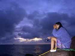 k日記ニカラグア編 99.12.18(土) またもや、雨。昨日、雨漏りに耐えられなくなり部屋を変えてもらう。前より狭くなるが、雨が降らない分だけ広く使えるので同じである。今日は、何をしようか?と考えるが雨では何もすることがない。しかたないので、パソコンに向う。 昼過ぎ、ようやく雨がやんだ。快晴ではないが、釣りだ、釣り!と待ってましたとばかに船着場の先の堤防へ向い、ご機嫌にのんびり糸をたらし始める。今日は、宿のおばさんに私達が食べられるような大きな釣り餌をもらってきたがもったいなくて餌になんか使えなかった。 釣りをはじめて1時間、子供が2匹釣れる。彼らは、目ざとく私達を見つけ寄ってきたかと思ったら、私達の針と糸を使っていっしょに釣りを始めた。 釣りをはじめて3時間、雨が降ってくる。我慢の子でじっと釣り糸をたらす。いまだに一匹も釣れない・・・本当に魚いるのかな?と疑問に思う。 釣りをはじめて3時間30分、見物人が2人訪れ「ここは、魚がいないよ。船着場の所にいるよ」との情報をゲットする。 釣りをはじめて4時間、日も沈み闇が訪れる。釣れた子供はいつのまにか逃げ、見物人も家路につき、二人きりになった。見物人の言うと通りここには魚はいないと悟り、船着場に移動することにする。 釣りをはじめて4時間30分、船着場で釣りを始めるが一向に釣れる気配がない。 釣りをはじめて5時間、今日はあきらめて帰ることにする。管理人にお礼をいて船着場を出る。 宿に帰り、今日も釣れなかった旨をおばちゃんに言い、釣り餌にともらった魚を料理してくれと頼んだら「こんなのは、もういらないのよ」と言いながら冷蔵庫をあさって大きな魚を2匹出してきた。こりゃ高そうだと値段を聞くと「あげるわよ」へ!?くれるの?こんな大きなの2匹も・・・そりゃ、なんぼなんでも悪いよと、お金を払うからと言っても聞きはしなかった。そんなこんなで、夕飯はタダ魚のから揚げと一匹も釣れなかった割には豪勢な食事になって満足、満腹だった。 夕飯を食べてるうちにまた雨が降ってくる。黒い海に雨が降る。雨に打たれ情けない顔の野良犬がこちらを見ている。現地の人が雨を気にする風でもなく歩っている。ビール片手に思いにふける、ああ・・・明日は晴れるだろうか? |