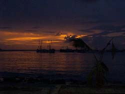 k日記ニカラグア編 99.12.19(日) どどど−-すごい勢いで雨が降っていた。今日も雨か・・・とげんなりしてしまう。今の時期は、雨が多いのか?と宿のおやじに聞くと「雨が降るのは時々だ」とのこと。私達は、その時々に当ったらしい。運がいいのか悪いのか?とにかくこの島にきて雨が降らない日がない。本当にここはリゾートなのか?と疑問に思い始めていた頃、雨がやんだ。 やっぱり釣りに出かける。今日は、浜からの投げ釣りに挑戦しようと船着場と反対方向へ歩き出すが、やっぱり途中で雨が降ってきた。道端の商店の軒を借りて雨宿りをしていると、大量の海老が入った袋を持って雨を気にせず歩ってくる奴がいる。そうだ、今日は餌をもらってこなかったんだと思い出し、海老男を捕まえ何処で海老が買えるか聞いてみた。雨がやんだので、海老男が言う魚屋に行って見る。 大きな網の門が少し開いていたので入っていって見ると、港が見えてきて人々がわさわさ働いている。そんな一人に何処でエビが買えると聞くと「今日は、ないわ。また明日いらっしゃい」冷たいお言葉。がっかりした顔をしていると、船を指差しながら「あっちへ行ってみたら。何かあるかもよ」と希望の光。 船に向う途中、いくつかのゴミ箱らしきプラ箱が並んでいた。それを覗くと、まだ食べられそうな魚や魚の粗が捨ててあった。「おお、これでいいんだけど、これってなに?」と首をかしげていると、ぽんぽんと肩を叩く人がいる。くるっと振り向いて、声が出なかった。すご顔の大きなオジさんが警棒持ってこちらをにらんでいた。「何やってんだ」とすごんでいる。「この魚を買いたいんだが」というと「これは、海に捨てる奴だ。明日またこい」とすごんでいる。「捨てる?これを・・・釣りに使うからこれでいいんだ」というと「さっさと持って出て行け」と警防を手のひらでぽんぽんと叩いていた。タダで餌を手に入れた私達は「あれ、みんな捨てちゃうのはもったいないよね」なんて言いながら、魚屋を後にした。 子供と小さな魚が数匹釣れる釣りをして暗くなる前に家路につく。道すがら、海を眺めていると浜辺に数人の子供が集まっていた。目ざとく私達を見つけた子供達がこっちに来いと手招きしている。 ?なんだろう?とひょこひょこ行って見ると、浜に大きな魚をたくさん積んでいた。「これ、あげる」?と大きいところを5匹も渡された。「いいの、もらっても?」と言うと「古いから捨てるんだ」え!!どう見てもまだ食べられるように見える。臭いを嗅いでもくさっとふうじゃない。 海老屋と言い子の子達といい、ここではこれが古いのか?と疑問に思った。取り合えず、ありがとうと礼を言うと「もっと、持ってってもいいよ」とうめちんの手に持たせようとするが、こんなにもらっても食べきらないので手厚く断った。そういえば砂浜に、50cm級の大物から5cm級の小物までたくさんの魚が捨ててある。 ホテルに帰って魚をもらった事を言うとなんか知らないが笑われた。さらに私達が釣った小さい魚を見せると輪をかけて笑われた。どうも、ここでは1日経つと古い魚になってしまうらしい。刺身でもいける魚を海に捨ててしまうなんて・・・なんとももったいないことだと思った。 |