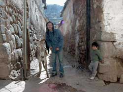 k日記ペルー編 2000.3.25(日) 風邪でダウンしていた旅人がリマに向けて出発するのを見送る。「今度は、アフリカで会いましょう」と手を振って出ていった。彼、アフリカに行ったら、今よりさらに黒くなってて、腰蓑一枚で歩いてたりして。それで「うめさん、久しぶり!!」なんて声掛けられたら、私達、引いちゃうよねぇ・・・なんて悪い想像をしてしまった。でも、本当にまた会えるといいなぁ。 兼ねてからNAOツアーのホームページを作る約束をしていて、やっとこできがったので見せに行く。奥さんに見せると、なかなか、喜んでくれた。気に入らなかったらどうしようかと思ったが、つくったカイがあったのだ。 結局、NAOツアーでご飯を頂き、酒まで頂き話しに花が咲く。いつも、いつも、ご馳走になってしまって、ありがたいことです。感謝、感謝。 |