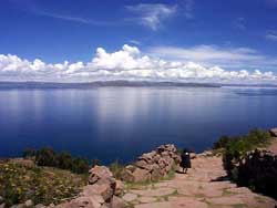 青い空に白い雲、そして青く澄み渡ったティティカカ湖を眺めながらの昼ご飯は最高だった。宿の主人に別れを告げ、港までの階段をゆっくりと降りて行く。出航の時間がやってきた。船はのんびりと走り出す。とても素朴な島、タキーレ島。また、これるかなぁ。