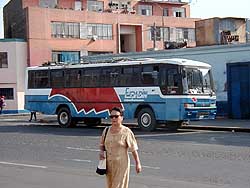 k日記ペルー編2 2000.4.26(水) この、居心地のいい香苗さん宅から出ることにする。いつまでもココに居たかったが、そうも行かない。もうそろそろ北に向けて出発しなければ・・・そう思った。ここの日本食は美味しかったなぁ・・・ココでの最後の夕飯を惜しみながら食べ、そうそうに香苗さん宅を後にした。さあ、旅人に戻るぞ!! バスは、まばらに乗客を乗せ定刻に出発した。リマは、広い。いつまでも街の中を走っている。30分くらい走った所に「北行き」の看板とちょっとしたバスターミナルみたいな空間があった。 そして、私達を乗せたバスは、何故かバスターミナル見たいな空間に入ったかと思ったらそのまま通過して、道路に出ると言う意味不明の行動を、延々1時間ほど繰り返した。その間、一人、二人とぽろぽろ人を拾っている。しかも、周回を重ねる内にどんどん運賃が安くなっている。はじめに乗っていた人々は痺れを切らし、不機嫌になるのは当然である「早く出発しろー」の叫びと足踏みにようやくバスターミナルみたいな場所から遠ざかった。 街並みはいつのまにか真っ暗な砂漠の荒野に変わっていた。バスは、ターミナルでの遅れを取り戻すかのようにものすごいスピードで砂漠の一本道をすっ飛ばす。対向車のライトが一瞬眩しく光る。後には、星が輝くだけの荒野に戻る。 |
