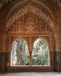 k日記スペイン編 2000.12.4(月) アルハンブラ宮殿への坂を登っている。行きはバスにしようと思ったが、ケチな二人にはバスに乗る事は出来なかった。でも、歩いてきて良かった。紅葉した木々のトンネル、石畳の道。時折、現われる噴水や銅像。歩いていて気持ちがいい。ちょっと得した気分になる。1日に入場5000人までと言う入場制限があるアルハンブラ宮殿。日曜日ともなると午前10時には、チケット売り場がしまってしまうと言われた。最近は、平日でも、正午にはチケットが完売してしまうのだ。前売りもあるらしいが、この坂をわざわざ上がって来るのはなぁ・・・綺麗だが、一度で十分のような気がする。 国際学生証も通用しなく、ここでは一般料金を払って入場。綺麗に整備された庭が目の前に広がる。 まずは、入場時間に制限がある「パレス・ナザレ」へ。広い庭。城壁の様に狩り込まれた木々が立ち並ぶ通路を延々歩く。大砲が現われ、カルロス5さんが金にものを言わせて作ったプラサを見て、制限時間ギリギリで「パレス・ナザレ」に滑り込む。 パレス・ナザレの中は、イスラム建築がちりばめられていた。細密なタイルによるイスラム模様に始まり、白壁を細かく掘り込んだ、イスラム模様。そして、豪華絢爛な蜂の巣天井にドーム型天井・・・トルコのブルーモスクや、イランのイマームモスクにも匹敵するイスラム建築ではないかと思うほどの出来映えに驚く。時折、イスラム型の窓から望むアルバイシン。やわらかな光を浴びて、白い壁がほのかに色つく。ここは、美しい街だった。広い庭をのんびりと散歩する。カフェテリアでは、やわらかな光の中でビールを飲みながら、ボガディージョをほうばる、のほほんとした姿が見えた。人々の緩やかな笑顔にホッとする瞬間。とてもいい所だと思った。 アルハンブラ宮殿の坂を降りる。腹が空いた私達は、アテもなくパエージャを作る店を探す。ただたんに前からなんとなく食べたかったから。そして、一軒のバールへ吸われていく私達。パエージャを頼むと言うと「40分はかかるがどうする?」と言われた。どうやら、パーティーかなにかがあって忙しいようで、店員も後から入って来る偉そうな客に掛かりっきりで、せかせかと動きまわっていてせわしない。ので、「チャオ」と言ってすぐに出てきてしまった。どうしようか?フラフラ歩く。おりしも、シエスタの時間らしく、どこのレストランも閉まっている。と、めずらしく開いている店があった。パエージャもやっているらしいのでここに入る。 大きな両手フライパン2つが運ばれてきた。ドドーン。これがパエージャかぁ・・・パク。一口ほおばる・・・なんだか、オジヤみたいだなぁ、しかも、米に芯が残っている。味も濃いめでしょっぱいし・・・これ、美味しい?とうめちんに聞いてみると「ウーン・・・不味くはないけど・・・うーん」腹が空いては戦は出来ぬ。腹が減ってるから入る代物かも知れない。これだけあるから満腹にはなるけれど、もう、パエージャは2度と食べないかも。なんて、思いながら無言で食べる二人。 バールで酒を飲み、とぼとぼとアルバイシンの坂を登る。本当にここはいいところだ。 |