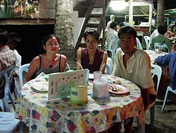 k日記タイ編 2001.2.4(日) すずしい朝。ベットでうだうだと気持ちのいい時間を過ごす二人。突然、ガン、ガランガラン、ボテ、ガランゴロンゴロン、カーン・・・ものすごい音に飛び起きる。なんだ?なんか屋根に落っこちてきたねぇ・・・外を眺めると、通路の向こう側に上から大きな丸いものが降ってきた。ボテ、ガランゴロンゴロン、カーン・・・それは、茶色く変色した椰子の実だった。ひえーこんなの頭にあたったら死んじゃうよ。オチオチ通路も通れないと思ったが、そこは客商売。抜かりはない。通路の上の椰子の実は全て取り除いてあり、バンガローの屋根は、落ちてきた椰子の実でぶち抜けないように頑丈に作ってあるらしい。 今日は、釣り道具を抱えて海へ行く事に。その辺で釣りツアーを取り扱っているツアーエージェントに「どこに行けば釣れる?」と聞くと「ボートで行くのが一番だけど、この辺だったら、桟橋がある湾かな。後は、ロングビーチの方もいいな」フムフムそうか「で、どんな仕掛けがいいの?ウキ?投げ?」「そりゃ、投げの方が大きいのが釣れるよ」そうかそうか「ありがとう」と言って立ち去ろうとすると「オイ、ツアーいかないの・・・」そんな高い釣りツアーには行けないのだが「ん?考えておくヨ」と希望をもたせて立ち去る。ちょっと悪いことしたかな? 私達が降り立った桟橋にはたくさん船がいたので、別の桟橋へ向かう。途中、ビーチに黄色いエアーマットが落ちていたので、思わず拾ってみる。どうせ穴があいて捨てたのだろうとよく見れば、大きく人がのる所と頭を乗せる小さなところと2箇所に分かれたタイプのエアーマットだった。望みを込めて、木陰で空気を入れてみる。ラッキー、穴が空いていたのは小さな頭の方で、大きい方はまだ現役ばりばりだった。これで海がもっと楽しくなるぞ。はしゃぐ二人。 海にぷかぷか浮かぶフロート桟橋で釣りを始めたうめちん。そして、お決まりの地元っ子が群れをなす。釣り道具をあれやこれやと引っ掻き回し、うめちんの釣り竿を貸してくれだのシュノーケルを勝手に持ち出し海に飛び込んだりと、釣りをするにあたってのいつもの展開が繰り広げられる。のんびり釣りも出来ないと不満顔のうめちん。しゃあないな・・・テグスに針と錘だけを付けた簡単釣り具をそこにいた人数分だけ作ってあげると、おとなしく釣りを始めた子供達。そして、ゆらゆら桟橋に揺られて気分が悪くなった私は、そそくさとビーチに退散。しばらくうめちん達をボーっと眺める。 釣りに飽きたのか、のこのこビーチへやってくるうめちんと昨日のビーチへ泳ぎに行く。シュノーケルを付けて泳ぎまわっていると、足元に新品のタモを発見。これも拾ってみる。「こんなのどうするの?」と持ってくのかと言う顔でうめちんに聞かれたので「うめちんが大きな魚釣ったときに使うんだよ」と強引に持たせる。いつのまにか、少しオレンジ色になってきた空。さんざん岩場をシュノーケルで泳ぎ廻る私と先ほどのエアーマットがよほど気に入ったのか、いつまでもぷかぷか浮かぶうめちん。時がたつのも忘れてしまいそうなくらい楽しいひとときが過ぎて行く。 さんざん遊んで宿に帰り、部屋へ向かう途中、「オーイ、日本人ですか?」と後ろから声をかけられた。振り向きざま「そうでース」と答えると、すらっと背の高い女の人が、こちらに駆けてきた。そして「もしかして、シタール弾いてる人ですよね、○○さんの結婚式でシタール弾いてたでしょ」「そうだけど」そう言われても、彼女の事が思い出せないうめちん。二人で顔を見合わせる。なんと、良く聞けば、うめちんの友達の友達で、昨日から私達の事を見知っていて、「あれは、知ったシタールの人じゃないか」と思っていたんだそうだ。こんな所で知り合いに会うなんて。ということで、一緒にご飯を食べに行くことに。そして、夜遅くまで、いろいんな話に花が咲く。 世間は狭い。ほんと、世界は狭いなぁ。 |