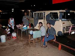 k日記ベネズエラ編 2000.7.4(火) 筋肉痛も治らないままに、シウダーボリーバルを後にする。雄大な流れのオリノコ川を横目に一路、ブラジルとの国境の町サンタエレーナ・デ・ウアイレンへ向かう。軽快に走る牛次郎。検問に停められたときにエンジンを切ってもカギを抜いてもトランスの線を抜いてもエンジンが動いたままでみんなをアッと言わせる程、調子がよかった。どんどん走る。 夕闇が迫っても走り続ける牛次郎。グランサバンナに差しかかる頃には、道路が狭くなるほどの両脇に木が生い茂り、道路を小動物が横切ったり、大きな木が倒れていたり、コウモリが車に体当たりしたり、突然、道路の舗装が無くなり牛次郎がボンガ、ボンガと跳ね回る、大騒動が起こる。そのうち霧が立ちこめ前が見えなく道路も見えなく、真っ暗闇でなにもなくなってしまった。看板はあれどガソリンスタンドさえ見当たらない。恐怖が襲う。そんな真っ暗の中を無数の蛍が飛び交う。 グランサバナに差しかかると雨が降り始めた。恐怖に思った私。青山さんに運転を変わる。どこまでも、どこまでも、何も見えない真っ暗闇の平原を走る。私達は、どこまで行ってしまうのだろうか?恐怖が襲う。 |