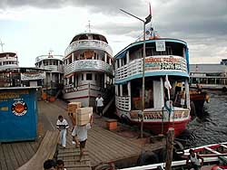 アマゾン川を往復する船。独特な形で旅人の旅情を誘う… |