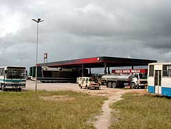 ブラジルのガススタ 2000.8.9 車を買ってバス旅行をやめ、車で旅する様になるとやはり車に関係があるものによく目が行くようになるようです。道のよしあし、ガススタのよしあし、走っている車の種類、道路による交通量の分布等々。道のよしあしはその国の国力をあらわしていると私は思いますし、道路による交通量の分布は人口の分布からその地域の経済状況まであらわします。バスで走っている時は、バスのよしあしや、バスターミナルにそれを求めていたのですが、車で旅をしてみるとやはり、その視点が変わってくるようです。