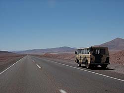 チリを車で走る 2000.10.24 チリは南北5000kmの長さがあるにもかかわらず、東西には平均150kmの長さしかない非常に細長い国です。その国土の特性上から、車で走るときにはどこをどのように走るかと言うルート決めをしっかりとしないと、1度行った道をまた3000Km戻らなければいけない…等と言う悲劇が生まれます。気をつけましょう。かく言う私達はこの旅で何と10個ものチリスタンプをもらうはめになってしまいました…(;_:)