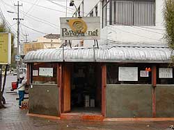 エクアドルはインターネットカフェが各街ごとにあるので、私達は全く電話で接続しませんでした。ですが、私達が泊まるような安宿でも部屋に電話が付いているホテルが多数あり、電話での接続は特に問題なさそうです。 モジュラージャックの形状はRJ-11と日本の物と同一。また、AP(アクセスポイント)もiPassと、GricのAPが各2つあり、問題はないと思われます。 街中の公衆電話事情ですが、公衆電話は至る所にあります。公衆電話の多くはICカード式。エクアドルの公衆電話は基本的にモバイルする人の事を全く考えないで作られています。電話の下にパソコンを置ける台は基本的にありませんし、あったとしても斜めになっていて非常に使いづらそうでした。モジュラーが付いている電話機は全くありません。 インターネットカフェ:評価4 エクアドルには非常に多くのインターネットカフェがあります。私達が確認したインターネットカフェのある街は以下の通りです。