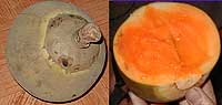 食べてみると、中に未発達な白色をした種がありますが、メロンのそれよりもまだ柔らかく、そのまま食べても全く違和感がありません。味はメロンに非常にそっくりですが、ちょっと青臭い感じもします。