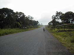 エクアドルを車で走る 2000.11.10 エクアドルは南米のなかでも非常に小さい国の一つ。しかしその中には海岸地帯、アマゾナス地帯、ガラパゴス諸島、アンデス山岳地帯と非常に多くの地形を持っていて、エクアドルをしっかり見れば、南米の自然の半分以上は満喫できると思います。 私達は、エクアドルの多くの道を車とバスで走りました。使用したメインルートはパンアメリカンハイウェイですが、他の国だったら道路が良いことで知られるパンアメリカンハイウェイもエクアドル国内においてはその限りではありません。エクアドルの道は多くの道が舗装されてはいるものの、舗装の品質は非常に悪いです。ブラジルの一部地域の様に道路上に大きな穴が空いているとか、ボリビアの様にとんでもない悪路ばかりとかそう言った訳ではありませんが、一度舗装された道路にまたつぎはぎすると言った案配でとても快適な道とは言えません。