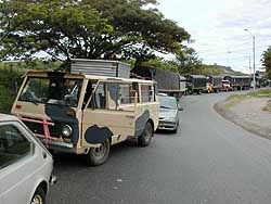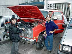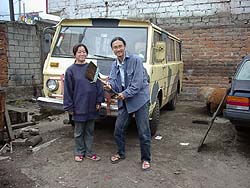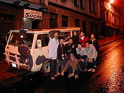 牛次郎さん壊れないでね―牛次郎の旅ダイジェスト版― 2000.11.21 私達は牛次郎と名づけたワンボックスジープで南米を周遊したのですが、最初から車を買って旅しようと思っていたわけではありません。私達もはじめはバックパッカーでした。日本からバックパックとシタールを担いでロサンゼルスに渡り、そこからバスでメキシコ、中米と南下、その後にチリに飛行機で飛び、チリ、ペルー、エクアドルと移動していました。その旅は主にバスを使う旅でしたが、たまに飛行機を使ったり、船を使ったりしていました。 そう言ったスタイルの旅も9ヶ月を超えてくると、バスに飽き飽きして移動するのもめんどくさくなってしまいます。そう言ったスタイルに飽きない人も居ますが、私達は飽きてしまったのでした。飽きっぽいのは私達の大きな欠点なのです。 その頃私達が宿泊していたエクアドルのホテルスクレは一泊50円と「世界でもこんなに安いホテルはないのではないか?」と思えるほど激安で、長期滞在するのに丁度良かったのです。確かに1ヶ月滞在していてもろくにお金は減りませんでした。しかし、ホテルスクレの滞在が1ヶ月を越えた頃、「これじゃまずい!! このままずるずる居たら出られなくなってしまう!!」と思い始めたのです。ですが、その頃の僕らはすでにバスで出発する気など毛頭なし。自力でパッキングして脱出など出来る訳もなし。ホテルスクレを脱出するには何か特別なイベントが必要だったのです。そしてある夜、みんなと話をして出た結論が「車を買って南米を回ろう」という話でした。参加メンバーはウメ、K、RideTandemの青山さん、グアテマラで邦人殺害事件の現場に居合わせた猪飼君の4人です。 その後、私達はキト市内の色々な所に車を探しに行きましたが思ったような車がありません。探している内にエクアドルは車の相場が非常に高いという事も発見しました。ちょっと綺麗な車だと6000$以上平気でするのです。「車を買うのに一番安い所はどこ?」と探した結果、フェリア・デ・カーロ(車市)の存在を発見し、そしてフェリア・デ・カーロ(車市)で後に牛次郎となるボックス型のジープを発見しました。フェリア・デ・カーロ(車市)で見つけたそのジープは、値段も$1880と非常に手頃でしたし、なによりも4人で横になって寝れる広さがありました。それを見た瞬間「これだったら宿代が浮くだろう…」と誰しも思ったものです。 そのジープは元の持ち主がセグンド・バカと言う名前だったため、牛次郎と言う名前になり、牛模様を施されました。私達は牛模様にしたつもりだったのに、気がついたらただの装甲車になっていたのですが。牛模様にした後、そのまま整備しないでは不安なのでメカニックに持って行き、クラッチ、ブレーキ、ハンドル、エンジンと壊れそうなありとあらゆる所を見てもらいました。見てもらうと牛次郎君、ほとんどの所がだめになっていて色々なパーツを交換しなければなりませんでした。私達は全部交換してしまえば問題ないだろうと考え、全てのパーツを交換したのですが…これがこれから始まるメカニック通いの始まりだとは思いもよりませんでした。 6月14日夕方。メカニックの兄ちゃんが「明日からパロ(ストライキ)が始まる」と言う情報を持ってきました。南米ではパロ(ストライキ)はしばしばある事。一度パロ(ストライキ)が始まると道路が分断され、公共交通機関はまったく動かなくなります。パロ(ストライキ)はしばしば10日間以上続き、パロ(ストライキ)の間はその街から一歩も行動できなくなるのです。それを知っていた私達、メカニックに頼み、夜の8時まで仕事してもらい、なんとか牛次郎を出発できる状態にしてもらったのです。 直った牛次郎をホテルスクレに連れて行き、ホテルスクレの宿泊者と最後の晩餐。そして夜の12時、出発しました。出発したはいいものの…夜の2時頃いきなりヘッドライトが点かなくなります。なんでだろう?と見てみた結果、ヘッドライトのハイビームとロービームの内のハイビームが点かなくなった事に気がつきました。「じゃあ、ロービーム使えばいいじゃん」と言う事で、その場は何とか収まったのですが、このヘッドライトの問題は最後まで引きずる事になったのです。 そもそも牛次郎君。牛次郎君はメーカから出荷された状態の車ではありません。車体はクライスラー、エンジンは日産の2000cという構成からも分かるように、どこかのエクアドル人メカニックが車のシャーシだけ買ってきて、エンジンを後付け。クラッチやブレーキもありあわせの部品で適当に作ったものでした。そのメカニックは車の事はそれなりに分かっていた様ですが、電気のこととなるとさっぱりだった模様で、とにかく牛次郎の配線は異常なまでに汚く、入り組んでいて、ぐちゃぐちゃでした。電気に多少の知識があるウメはブラジル、サンパウロで配線を一から全部引き直そうかとも思ったのですが、あまりのぐちゃぐち