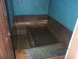 下の写真が、お湯を張った所。右側が湯船で、左側が体を洗う所です。気になる泉質は、鉱物泉みたいな感じ。微妙にイオウの匂いがしますが、それよりも鉄の匂いが強いです。味は鉄の味がメインで、そこにちょっとイオウが溶けた味がしました。口に含んでイヤな味はしませんでしたので、多分飲めると思います。