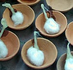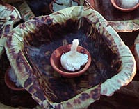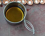 さて、それでは作ってみましょう。まずは材料購入。 必要な材料は以下の通り。 コットンで出来た灯心(150個入り、10ルピー) 素焼きの皿(10個、1ルピー) 葉っぱの皿(1パック…80枚くらいある、10ルピー) ラード(1L、30ルピー) これだけです。一応お祈りなので、花も用意しておくといいと思いますが、見た目の美しさだけを重視した私達は花は入れませんでした。素焼きの皿、葉っぱの皿、コットンで出来た灯心はダシャシュワメードガートの裏手の小道にある素焼き陶器屋さんで全て手に入ります。ダシャシュワメードガートに面したお店はとんでもなく高い事を言ってくるので、聞かない方がいいでしょう。