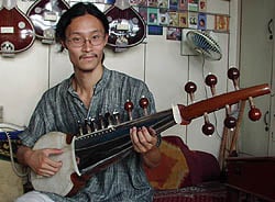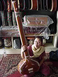 インド楽器紹介1-弦楽器- 2001.4.6 インド音楽はラーガ、ターラと呼ばれる音楽的特徴と共に、その楽器のユニークさでも良く知られています。インド楽器には色々な形態がありますが、代表的には弦楽器、打楽器、笛などに分類する事ができます。 インド楽器は、特に南インドにおいては演奏する楽器すら演奏家の自由に任せられる傾向があります。南インドでは例えば、素焼きの壷ですらガタムと言う名の楽器になってしまうほどです。ここではそのユニークなインド楽器を分類して紹介していきます。