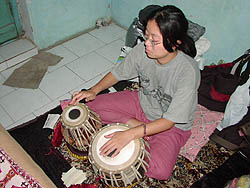 タブラは世界で一番難しい打楽器だとよく言われますが、実は非常にきっちりとしたシステムが出来あがっており、さほど難しいものではありません。インド人はタブラから20以上もの違う音を出しますが、20以上の音(叩き方)全てに音名が付いていますし、叩き方もしっかりと決まっています。インド中どこに行っても、タブラのエキスパートには事欠かないのはそのせいかもしれません。