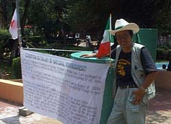 I「まず、日本の旗がないと誰がやっているのかわかんないじゃないですか。今日本で国旗をめぐって色々ありますけれどもね。日本人がやっているんだって言うアイデンティティーな訳ですよ。それから、やる場所のその国の国旗をつけて。今日はメキシコだったんで、メキシコと日本の両方の国旗があって。メキシコと日本の分化交流って言うか。そういう風に考えているんですよ。」