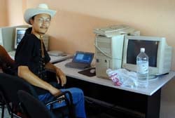 その電話屋さんで教えてもらったのが写真のインターネットカフェでした。ウメは「俺は日本のコンピュータープログラマーだ!!」と言いつつ、このインターネットカフェの店員をうまく丸め込むことに成功。首尾良く、VAIOをインターネットカフェのLANの中に入れてもらいました。(^_^) さすがに、店員さんは大分心配そうでしたが…。ちなみに私だったら絶対入れさせません。(断言) |