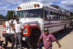 ニカラグアのみならず中米では、アメリカのお下がりと思われるスクールバスを普通のバスとして使用しています。バスはBulueBird Co.と言う会社のもので、アメリカの小中学校で使用していたものなのでしょう。その証拠に、時々「Your childlens safety is our business」とか書いたステッカーが張ってあったりします。ですが、そう言った様に原型をとどめているバスはあまり多くなく、中に書いてあるのは大体「Dios