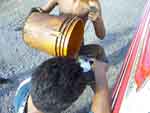 そしてこの写真はバスに燃料を入れている所。私達がホンジュラスの国境を越えてニカラグアに入った所で拾ったバスが途中で止まったので「なんで止まったの?」って聞いたら「燃料入れるから」との事。でも、周りにガソリンスタンドなんてないしなぁ…と思っていたらバケツを抱えてくるオッチャンが一人。「え?もしかしたらこれ?これ燃料?」と思っていたら、写真の様に入れはじめたのでした。