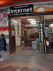 プーノインターネットカフェ情報 2000.4.7 プーノは船が航行する湖で世界一高い所にあるティティカカ湖畔にある街です。プーノ自体には特に見どころはありませんが、プーノからティティカカ湖へちょっと船を進めると、トトラ(葦の一種)の浮島であるウロス島や、インか時代の耕作システムがのこっているタキーレ島等に行く事ができます。 そのような観光客は来るけれどもあまり観光客が滞在しないプーノのインターネットカフェです。プーノのインターネットカフェの多くはプーノの中心地であるピノ広場とアルマス広場を繋ぐ歩行者天国の所にあります。