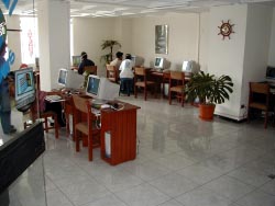 街自体は中南米によくあるコロニアル調(植民地時代にスペイン人が作ったスペイン風の街並)の街並でどうってことありませんが、見る人が見ると「月が大地から離れる時、月の光を忘れていった都市」となるのだそうです。アレキパの建物は周辺で採れる白色の石(軽石みたいなもの)で全て作られているので街全体が白く見えるのです。それにしてもちょっと言い過ぎだろと思うのですが。 アレキパを歩きまわって思ったのですが、アレキパにはホントいっぱいインターネットカフェがあります。特にアレキパの街は1ブロック歩けばインターネットカフェに当る、犬も歩けばインターネットと言うくらいインターネット屋があり、「こんなにあって誰がつかうねん」と悪態をつきたくなるほど。インターネット屋が100mの間に3軒ある路地もありました。 と言うことなので、アレキパのインターネットカフェは紹介するまでもないのですが、とりあえずここはお薦めと言う所を1軒だけ挙げておきます。