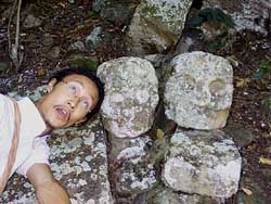 コパン遺跡のどくろ像と同じ顔の人間発見!!(コパン遺跡 1999.12.4)