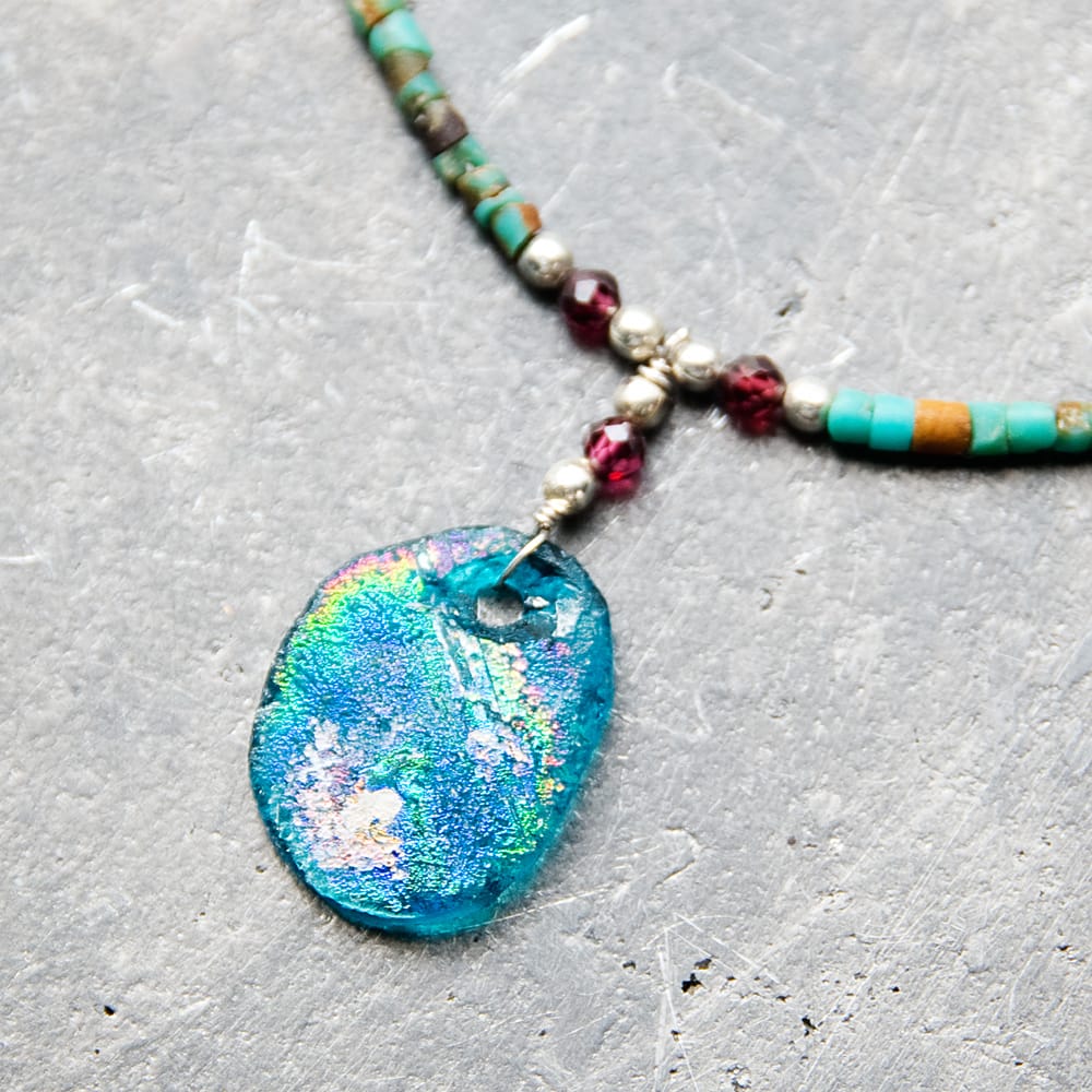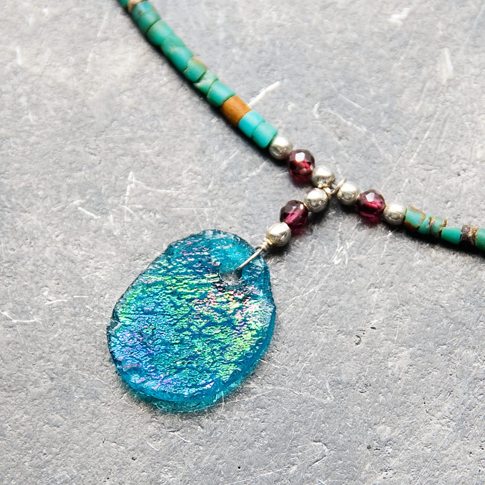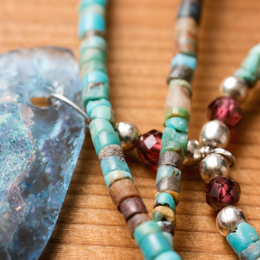 〔一点もの〕ターコイズとローマングラスのペンダント付きネックレス ローマ時代からの贈り物 通販店