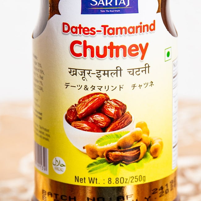 | 原材料・成分 | デーツ、砂糖、タマリンド、食塩、クミン、赤唐辛子、コリアンダー/pH調整剤(L酒石酸)、乳化剤(キサンタンガム) |