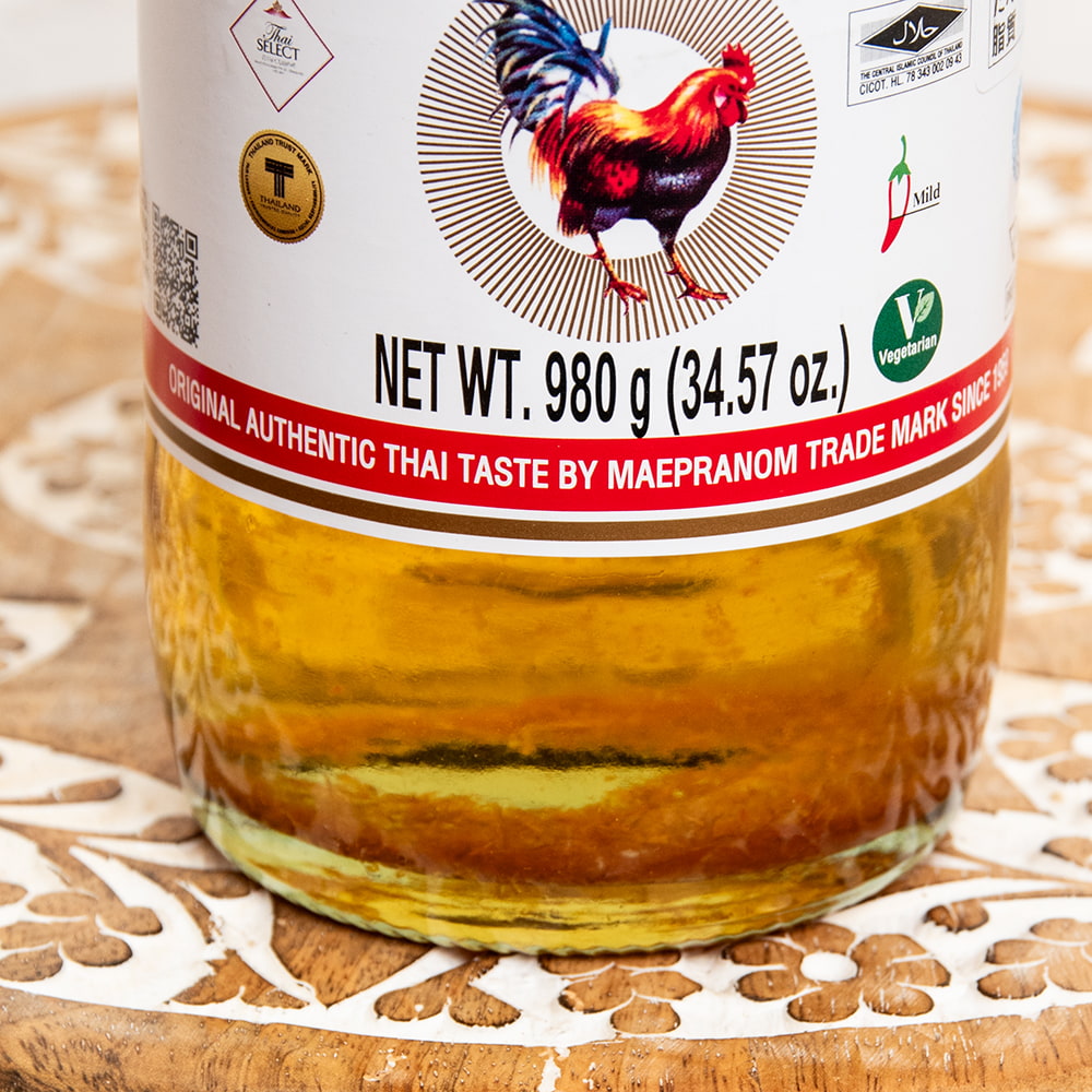 。最後にはチリなどが底にとごって残りますので、うちではナンプラーを入れて最後まで使い切ります(せこいですが)。ブランドはタイで評判の高いところです。