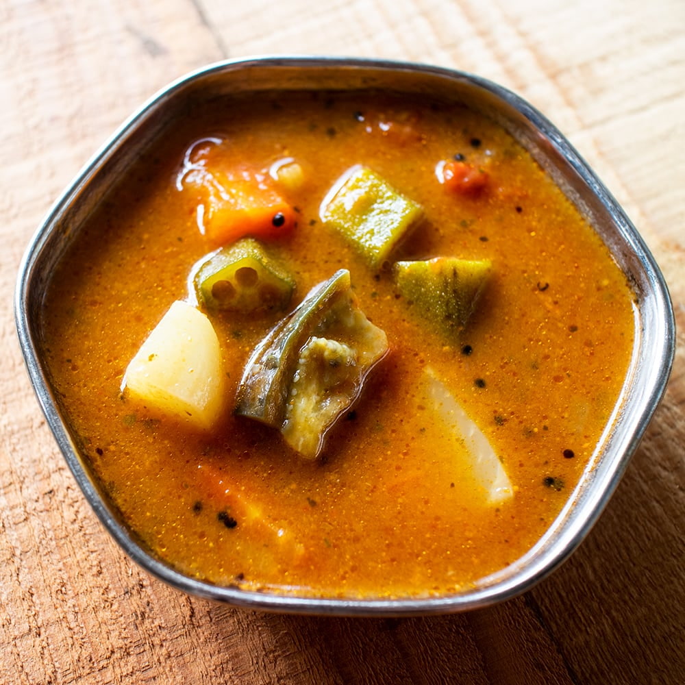 南インドで人気のスープ「サンバル」を作るためのパウダーです。サンバルは南インドの定食の一品として欠かせないほか、ドーサのつけダレになったり、南インド料理ワールドの代表格と言っても差し支えない豆野菜汁です。このパウダーで作ったスープにお好みの野菜などを加えてお召し上がりください。また、本場南インドの方はこちらにアルハール豆を入れてスープを作ります。