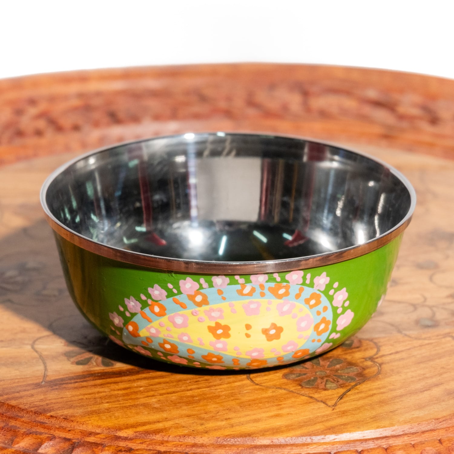 ピクルスやソース、デザートなどを入れておくのにぴったりなインドの小皿。その他、薬味や調味料を入れておくのにも便利です。使いやすいサイズ感で、色鮮やかなかわいいカシミールのペイントが、施されているのが特徴です。