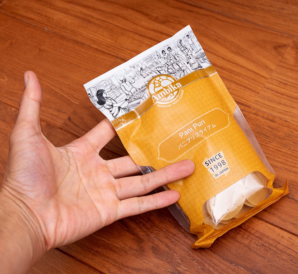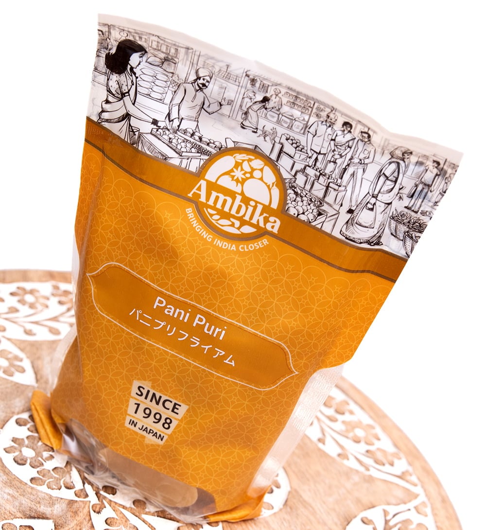 こちらの商品は、パニプリのプリと呼ばれる丸っこいボールを作るためのものです。180℃の油でこのパニプリ・パパドを揚げると丸いボールが出来上がります。■パニプリとは