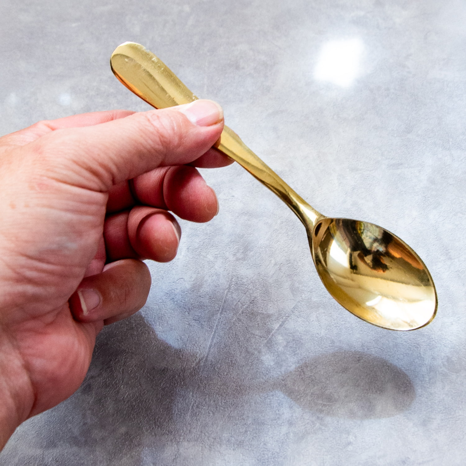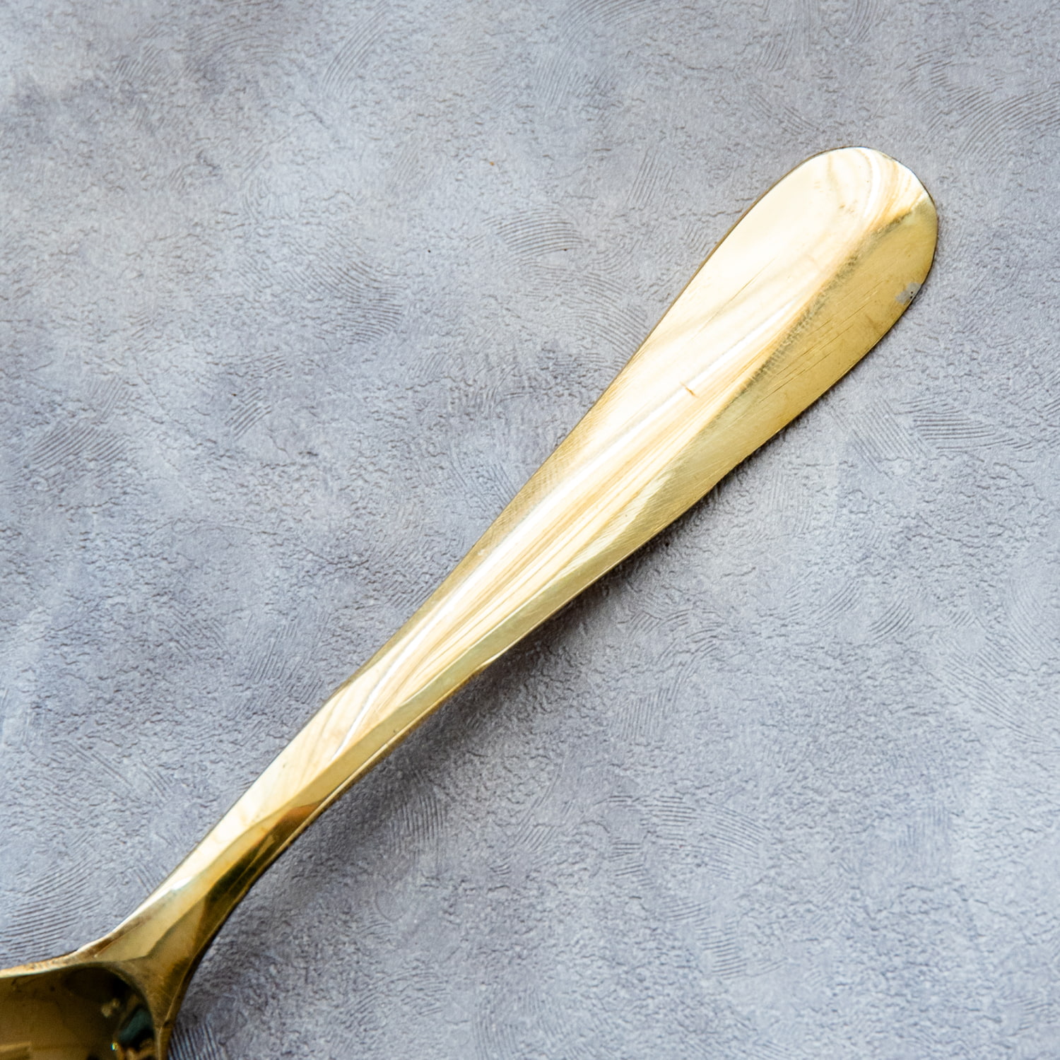 インド・デリーの職人によって丁寧に仕上げられた、真鍮のスプーンです。柔らかく光を映す黄金色の表面は、使い込むほどに落ち着いたアンティーク調へと変化し、年月とともに味わいを増していきます。日々の食卓に寄り添いながら、自分だけの風合いへと育っていく一品です。程よい厚みと洗練されたシルエットは、カレーやチャイなどのエスニック料理はもちろん、紅茶やデザートにも美しく馴染みます。華やかさの中に落ち着きを感じさせるシンプルなデザインは、キッチンウェアとしての格を引き立てます。
