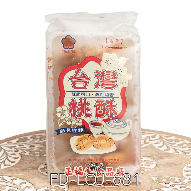 台湾・台中の老舗ベーカリー正福堂が、伝統製法で一枚ずつ丁寧に焼き上げています。添加物を控え、素材の風味を生かした味わいです。桃酥は同店の代表商品で、台湾では贈答品や土産としても人気があります。