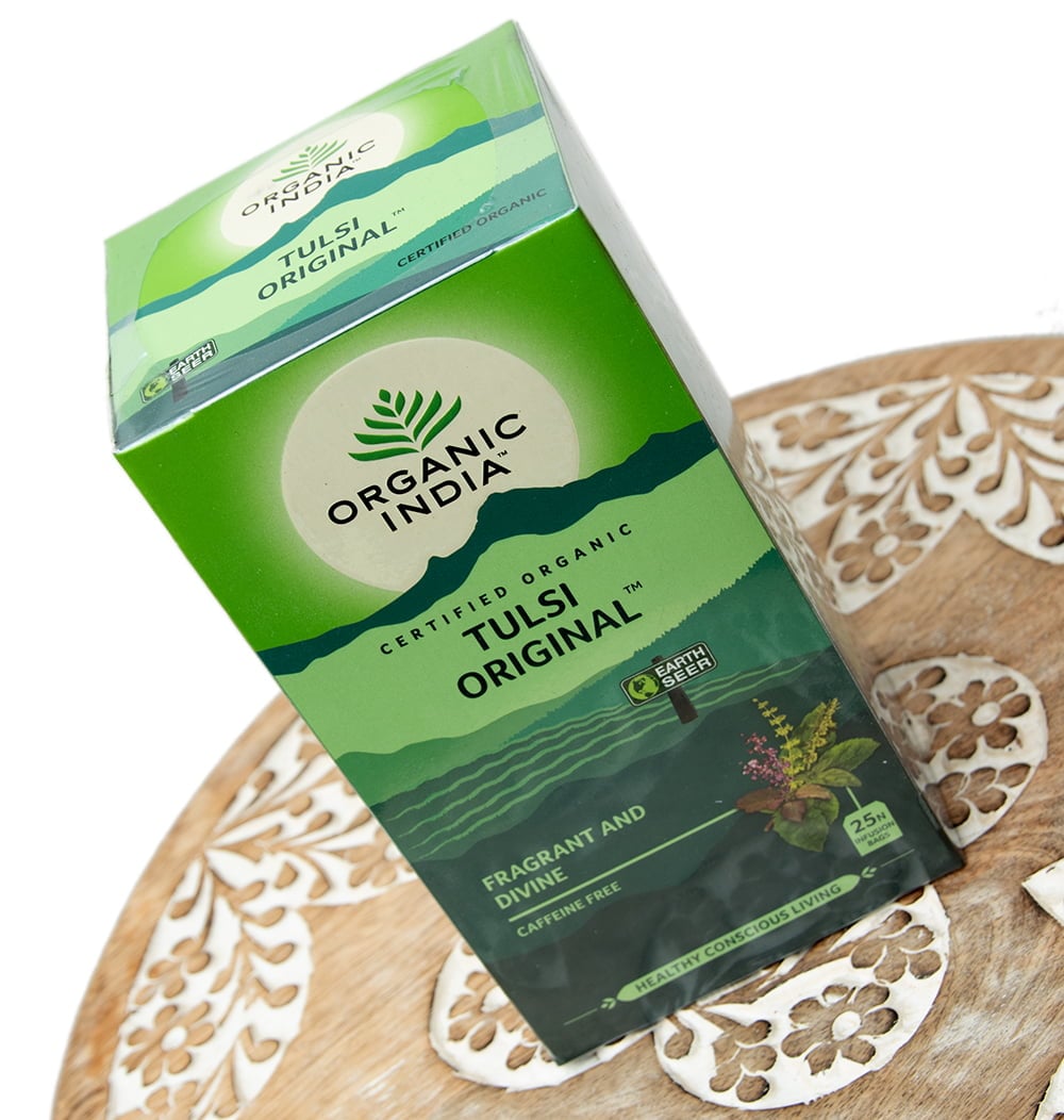 アーユルヴェーダで奇跡のハーブと呼ばれるトゥルシーがハーブティーになりました。こちらの商品、ティラキタでは初入荷ですが、インドでは人気に商品で、FabIndiaや高級ショッピングモールなど、ハイクラスの方々が行くような場所で売られていて人気を博しています。独特の苦みが不思議と癖になる、「Organic India」のトゥルシー茶。古くから「万能のハーブ」と呼ばれるだけあって、ホーリーバジルには数えきれないほどの薬効があると言われています。