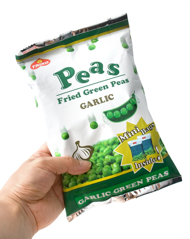 こちらの商品はお得な6個セットです。単品でご購入いただくよりも合計で100円、お得なお値段になっています。ティラキタ社員も絶賛!!小粒のグリーンピースをガーリックで味付けしたスナック。