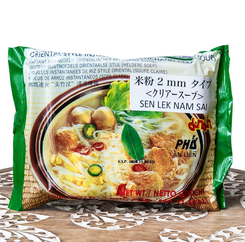 タイでおなじみのセンレック(米の麺)のインスタントヌードルです。透明で澄んだ色のクリアースープ味デス。■調理方法