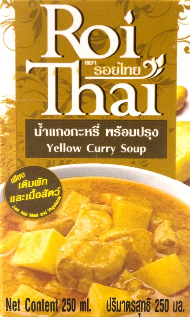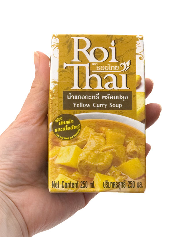 【Roi Thai(ロイタイ)】のイエローカレーの素は、スパイスもココナッツもすべて入っているので温めるだけで食べることができます。鍋に開けてお好みの具材を入れ具材に火が通ったら出来あがり。急な来客にもすぐ対応、お腹がすいて待てない人にもすぐ対応、しかも、タイの味を簡単に再現出来ます。是非、一度、お試しください。■小サイズ