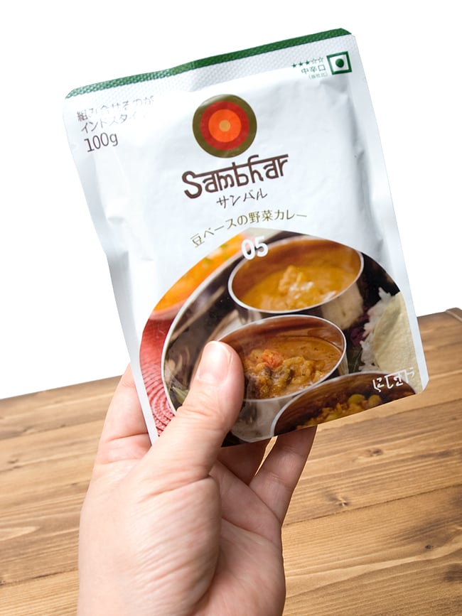 こちらは、南インドはタミル地方の豆ベースの野菜カレー。南インドの定食や食卓には欠かせない日本で言う味噌汁的存在。南インド独特のトゥールダルを柔らかくなるまで煮てペースト状に煮込んだものにタマリンドの酸味をアクセントとして加え、ナスや玉ねぎ大根などの野菜と一緒に煮こみます。カレーというよりもシチューのような優しい味わいですので、朝ごはんや遅めの夕食、きつめのスパイシーカレーと一緒に食べるのがおススメですよ。ベジ、中辛口となっています。化学調味料、香料、着色料、保存料無添加。■組み合わせを楽しむ