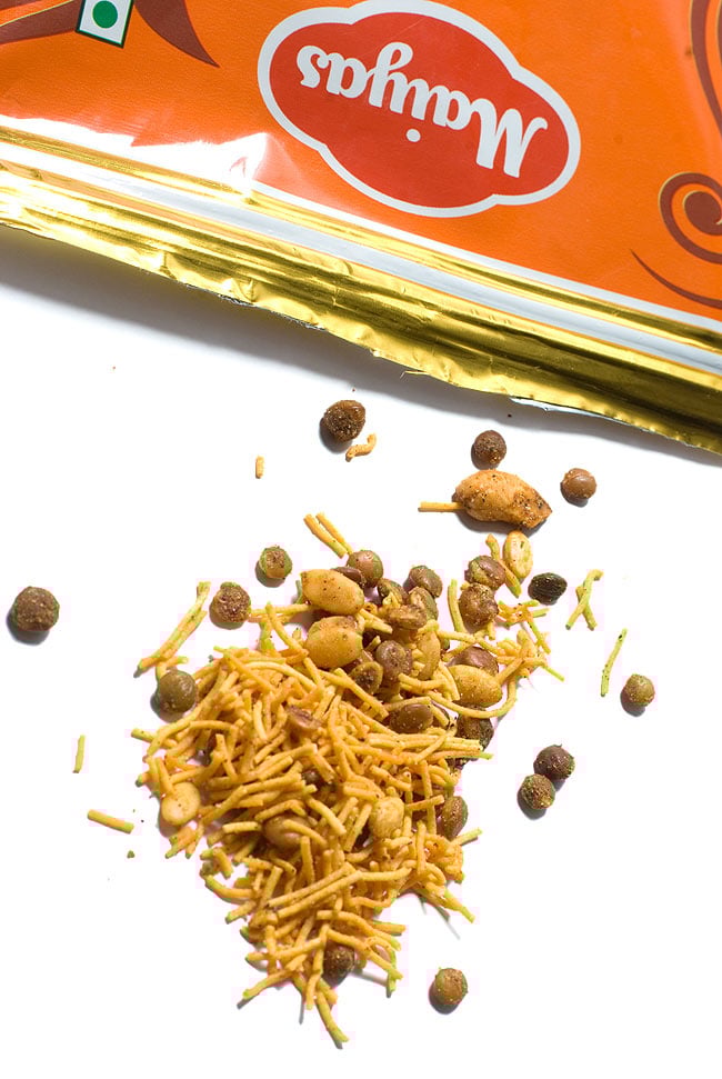 こちらのボンベイミクスチャは、そんな、インドの味を再現したスナック。チャックが付いていて湿気ない、インド物にしては大変上質なパッケージが使用されていますので、ちょっと食べて机の上においていて、小腹がすいたらまた食べるといったながら食べにピッタリです。