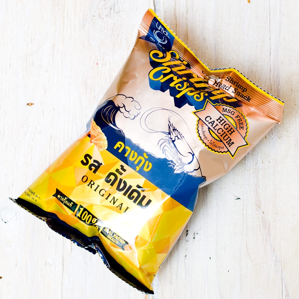 えびの頭部分をカラッと揚げたユニークなスナックです。 風味豊かなエビのうま味とタイ風に味付けされたちょっとスパイシーなフレーバーは、飽きのこない美味しさです。| ブランド | Umai |